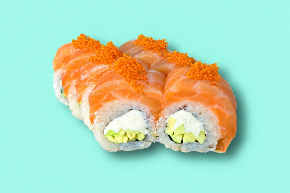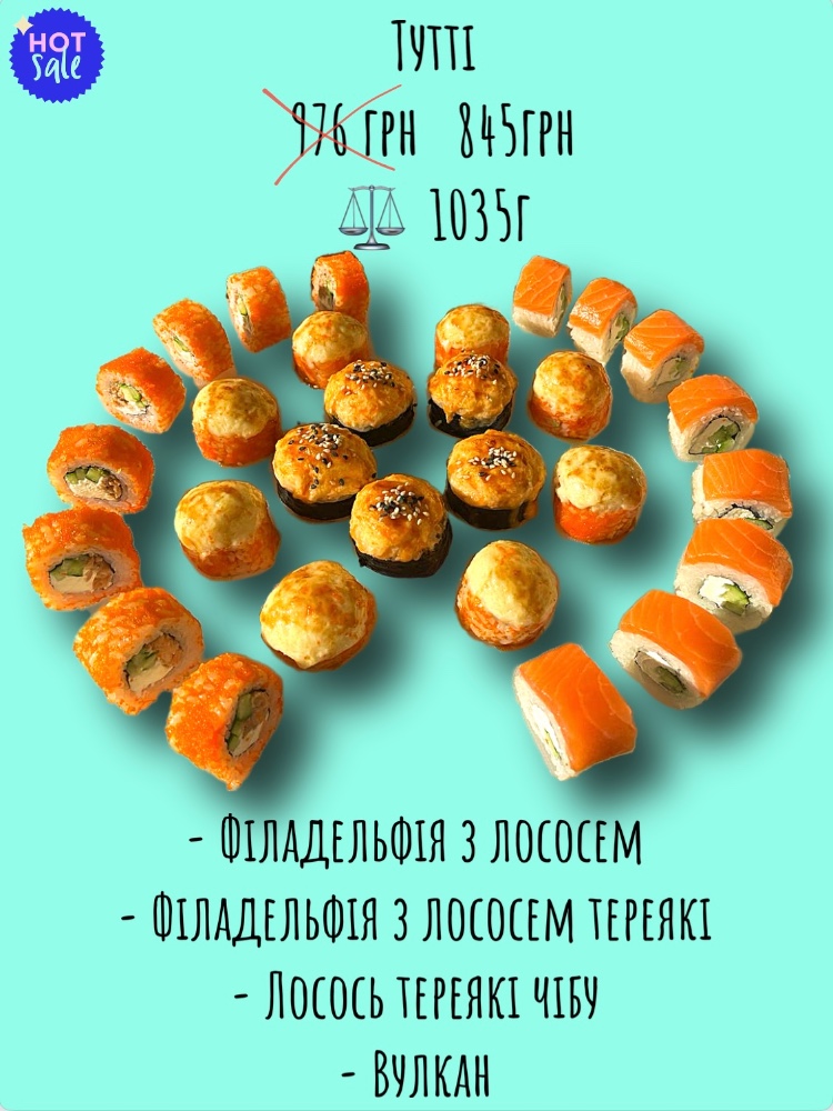 лосось, вершки, місо бульйон, водорості вакаме, рис, кунжут